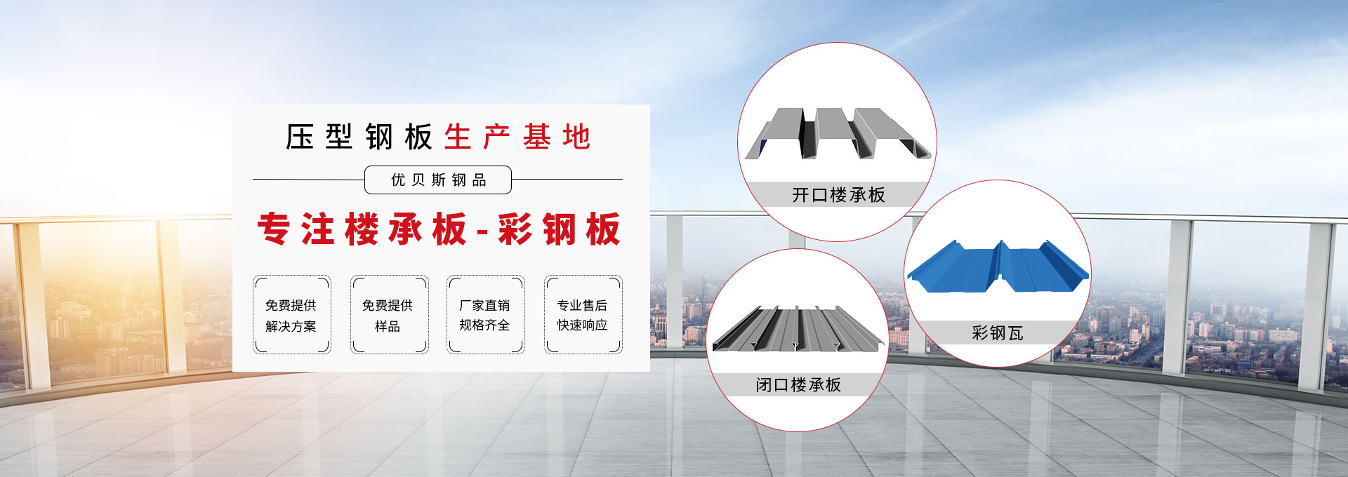 無錫優(yōu)貝斯鋼品有限公司主要生產(chǎn):樓承板,鋼承板,免澆筑樓承板,壓型鋼板,彩鋼板,閉口樓承板,開口樓承板,縮口樓承板價(jià)格優(yōu)惠及相關(guān)的鋼結(jié)構(gòu)輔材。 優(yōu)貝斯始終追蹤并處于鋼結(jié)構(gòu)建筑及其圍護(hù)系統(tǒng)技術(shù)的發(fā)展前沿,預(yù)制金屬屋墻板面和樓承板系統(tǒng)。優(yōu)貝斯擁有的技術(shù)和豐富實(shí)踐一直為客戶提供質(zhì)量的產(chǎn)品、鋼建筑系統(tǒng)解決方案和貼心的服務(wù)。